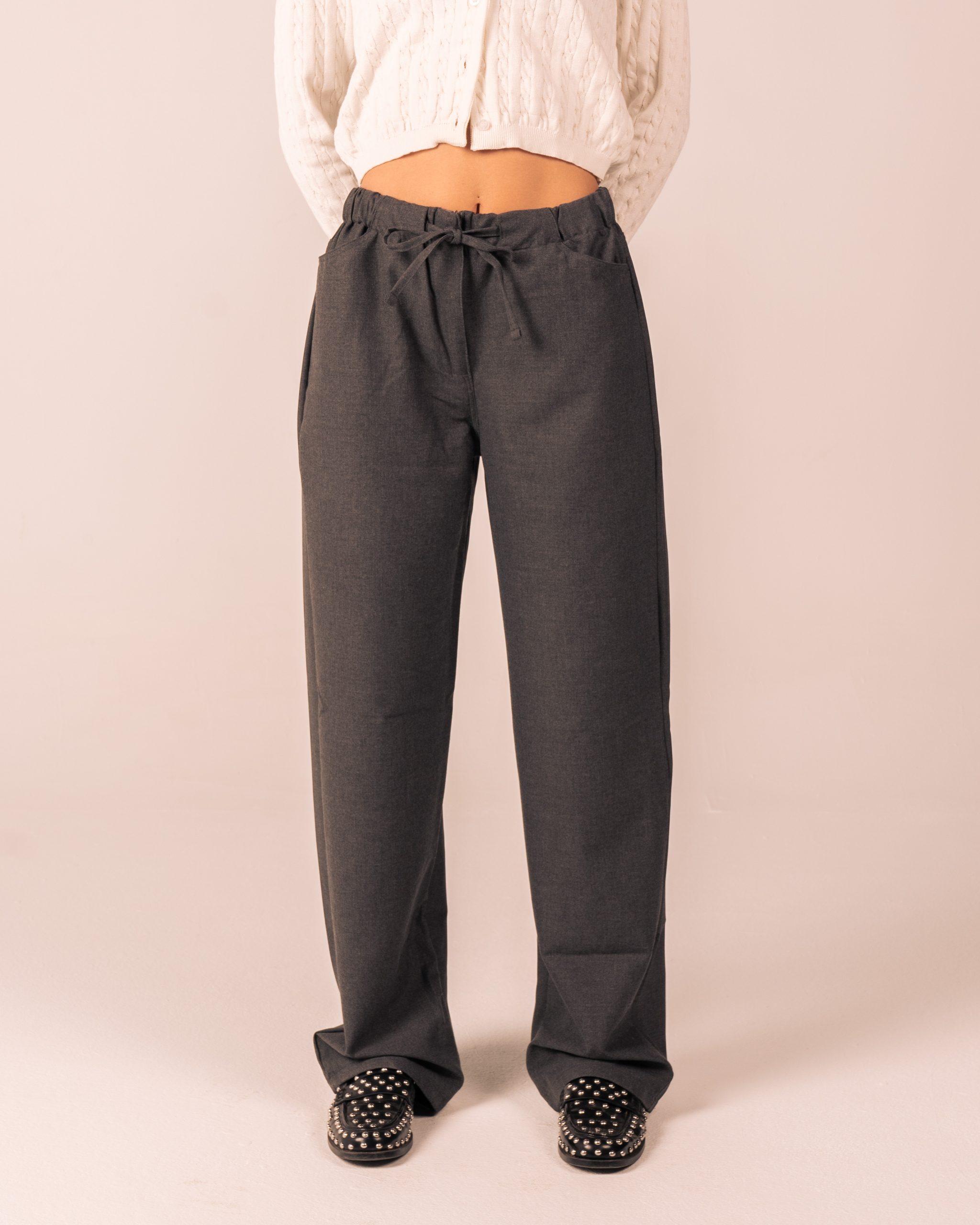 Grey Drawstring Straight Leg Pants