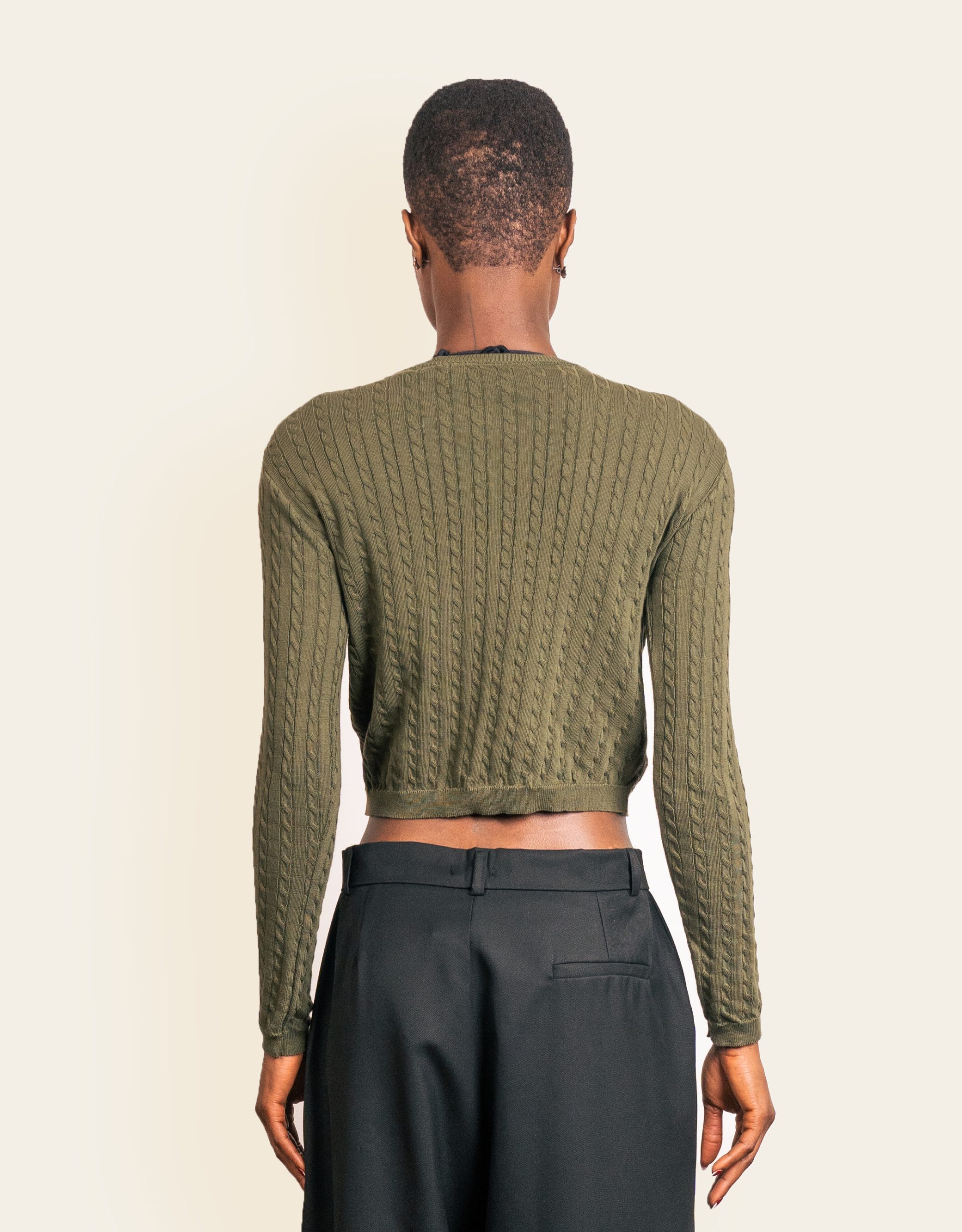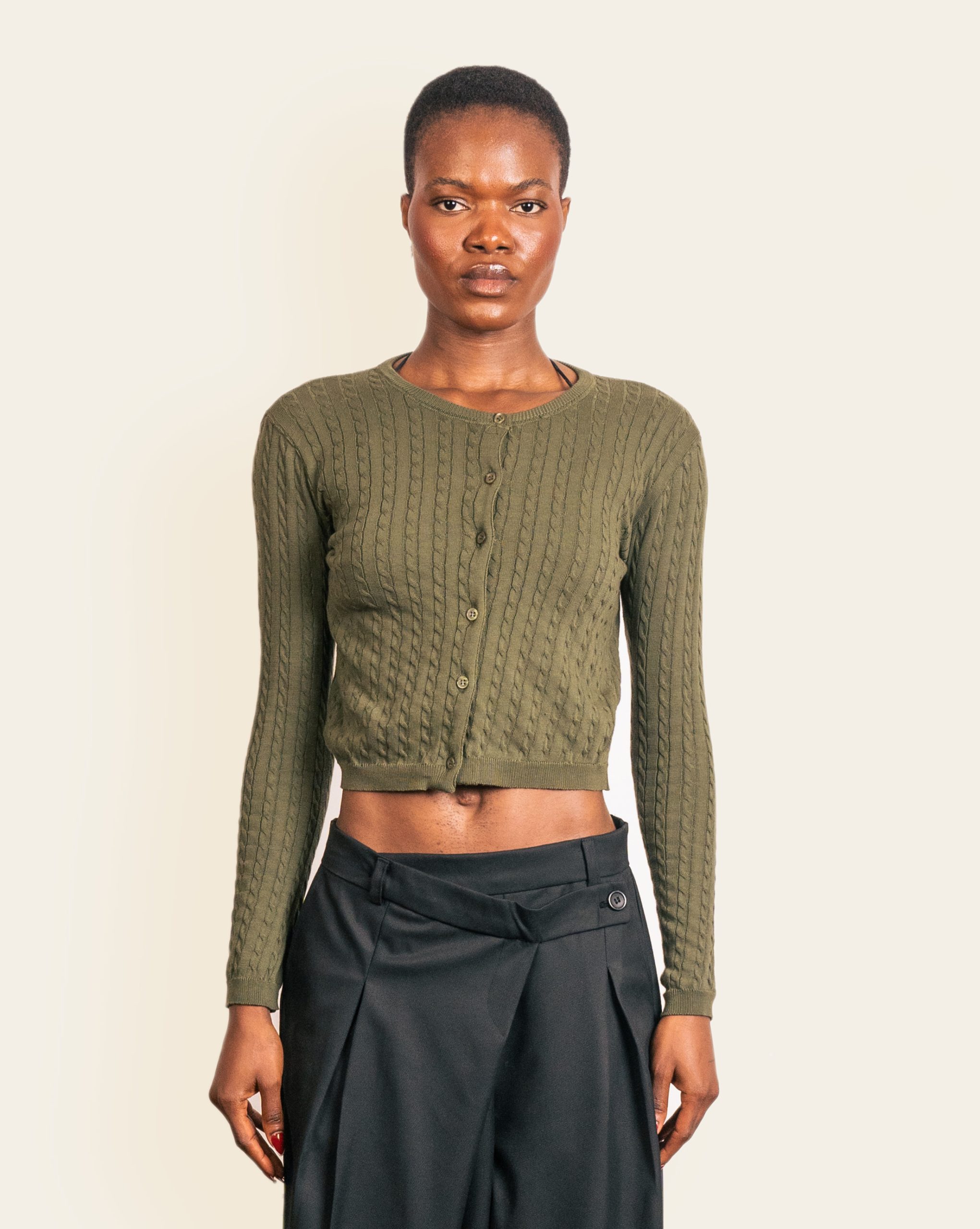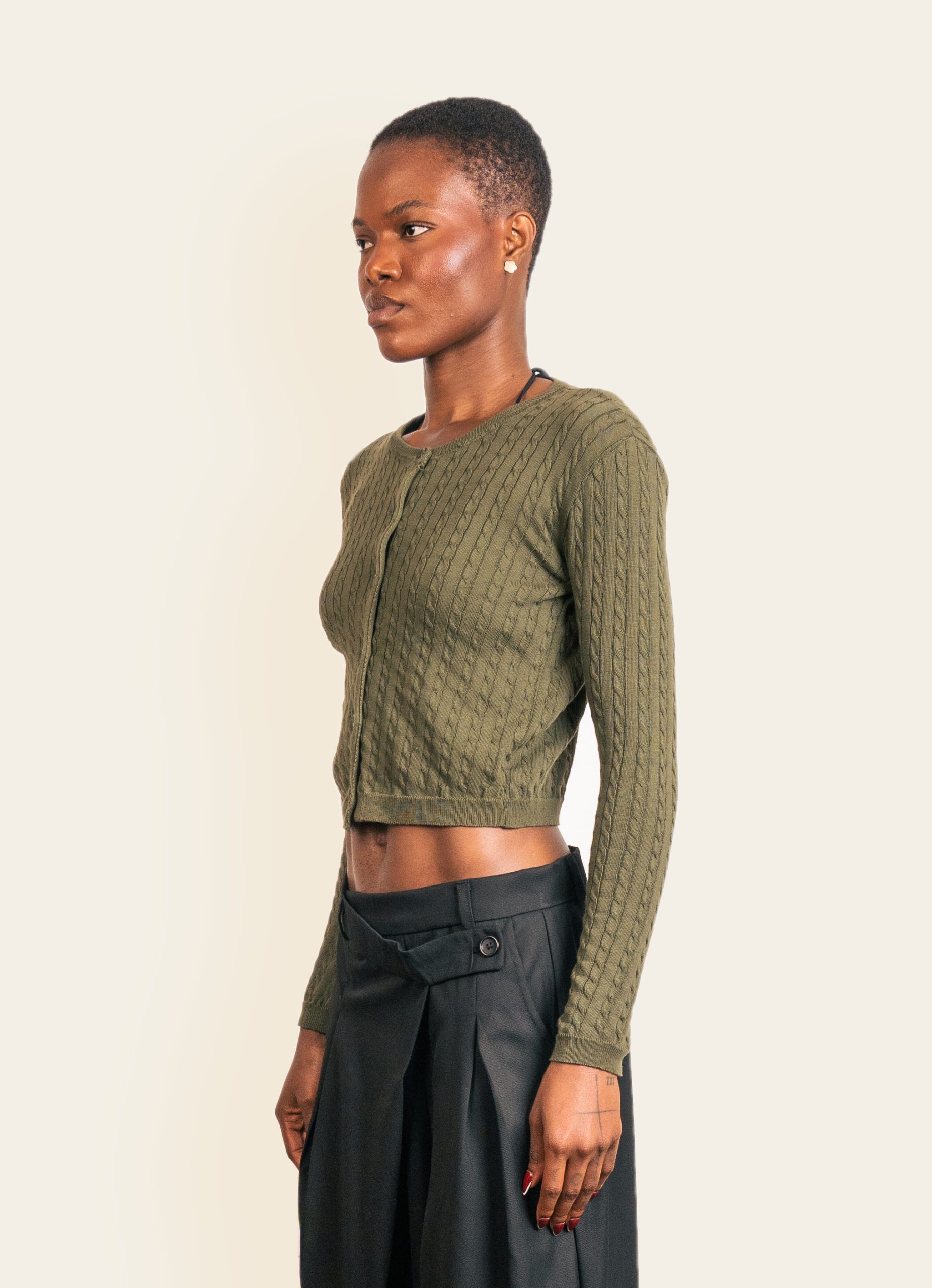 Olive Green Cable Knit Cardigan 840.00 EGP